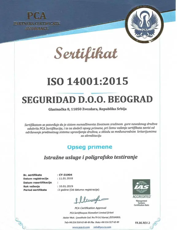 Seguridad Beograd sertifikat iso 14001